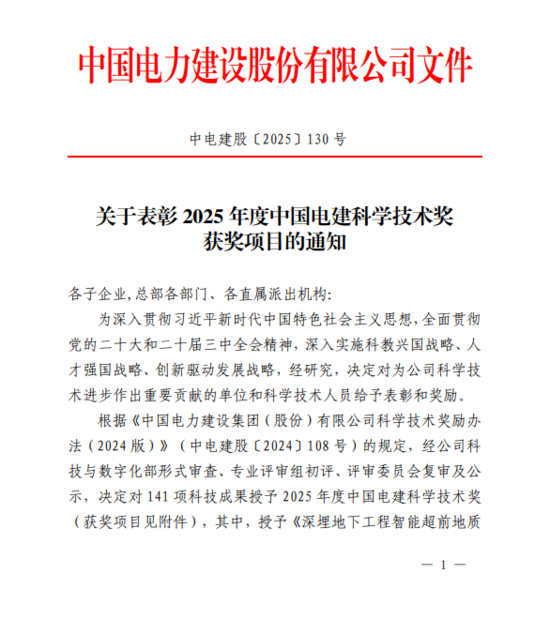 設計院3項成果榮獲中國電建科學技術獎